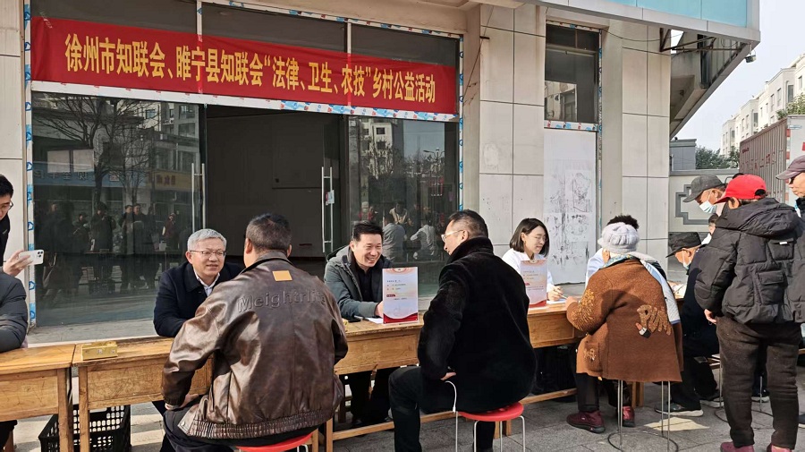12 月7日,冬日的睢宁县双沟镇官路社区暖意融融。由徐州市知联会、睢宁县知联会联合主办的“法律、卫生、农技”乡村公益活动走进社区,将优质公共服务送到群众“家门口”。市知联会会长、市国动办二级巡视员雒永信,县人大常委会副主任、市知联会理事、县知联会会长李曙光参加活动。